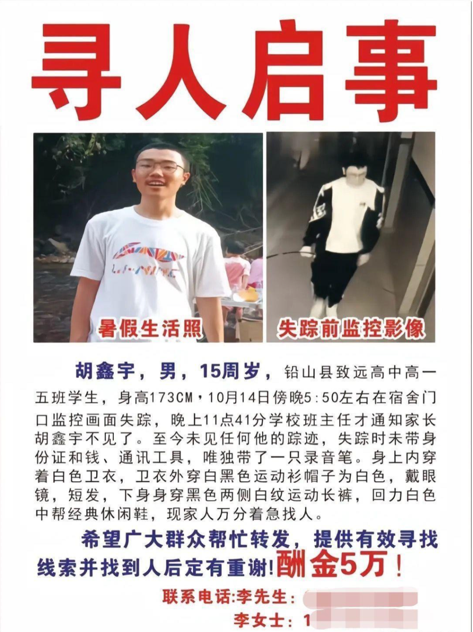 胡鑫宇,15岁,是铅山县致远高中是封闭式管理学校高一(五)班学生,于2022年10月14日在校内失踪,引发社会广泛关注。