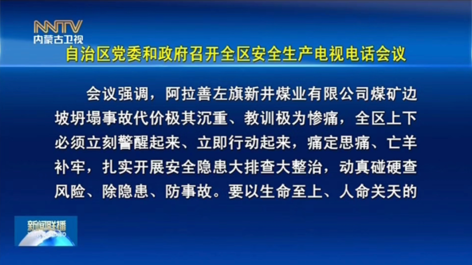 同一天,据《内蒙古日报》消息,2月24日下午,自治区党委和政府召开全区安全生产电视电话会议,全面系统部署全区安全生产工作。