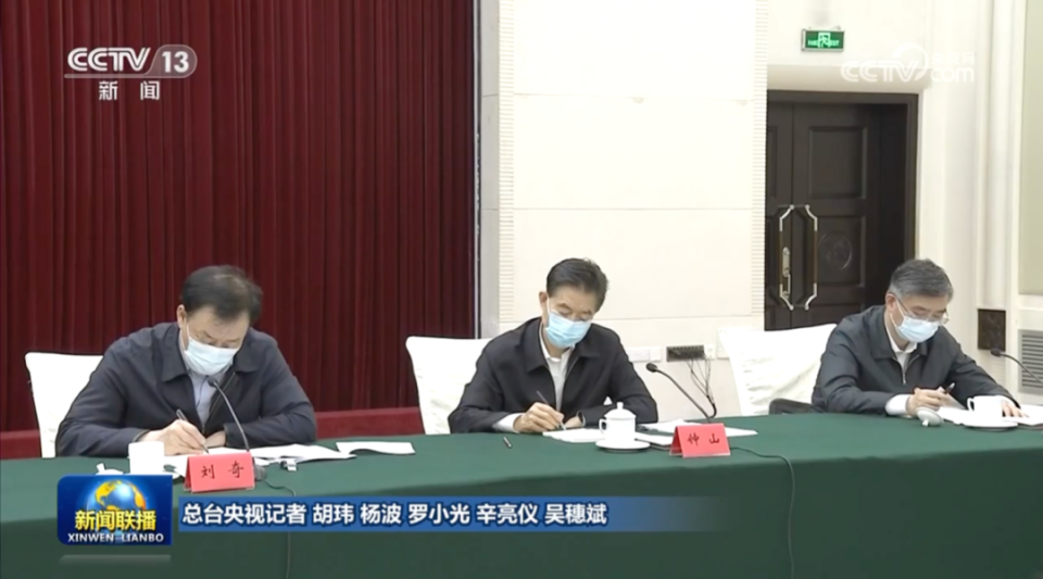 画面显示,全国人大常委会秘书长刘奇,全国人大宪法和法律委员会主任委员信春鹰、全国人大财政经济委员会主任委员钟山,全国人大宪法和法律委员会副主任委员沈春耀等都在现场。