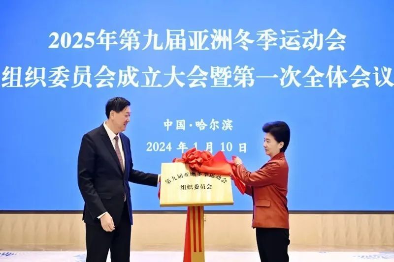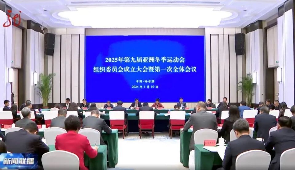 1月10日上午,2025年第九届亚洲冬季运动会组织委员会成立大会暨第一次全体会议在哈尔滨召开。
