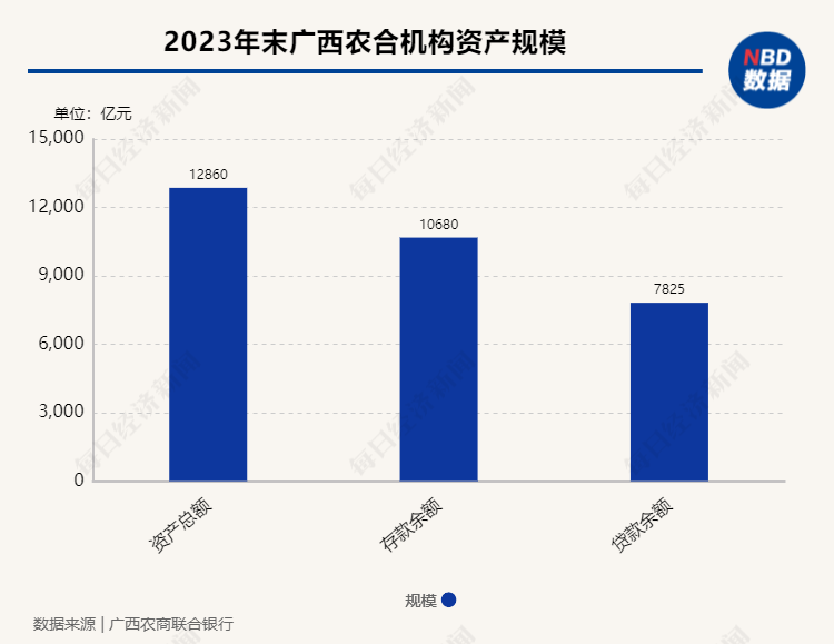 截至2023年12月末,广西农合机构资产总额12860亿元、存款余额10680亿元,居广西银行业首位。此次成立后,广西农商联合银行成为广西首家“双万亿”规模的金融机构。