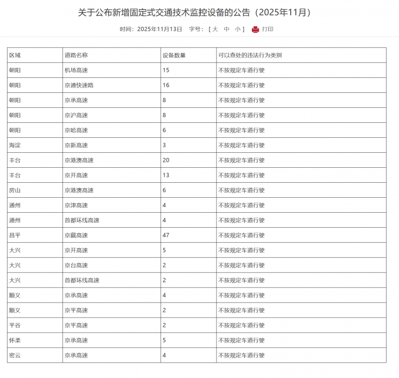 北京新增333个电子警察,涉及东城、朝阳、海淀等区
