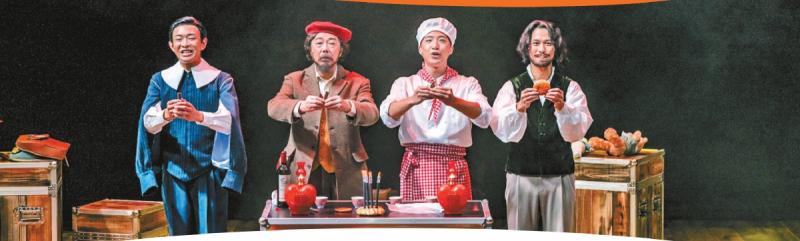在粤语中,“半桶水”意指学艺未精、不够纯熟,类似北方俗语“一瓶子不满半瓶子晃荡”。在近日的北京话剧舞台上,观众看到了由香港话剧团带来的这样一部《半桶水》:四个生活在“伪文艺复兴”时期“欧洲某小镇”的外国人,假模假式穿着古典服装,画家挥舞画笔却没人买他的画,商人翻着账本其实根本推销不出艺术家的作品,大厨带着厨师帽其实从没真正上过灶,作家苦思冥想剧本完成依然遥遥无期……这一切像是一场时空错乱的即兴表演。