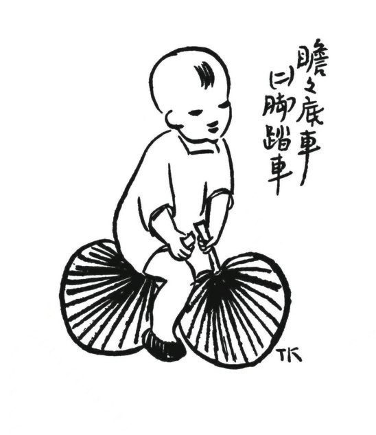 不知道有多少人是先对丰子恺先生的画有印象,再留心作者,进而读他的文章。我是这样的。读小学时,从杂志上看到一篇介绍丰子恺学画经历的文章,附有一幅儿童漫画:几只抽屉次第拉开,一个小朋友要当作梯子登上去取苹果。他的画风太独特了,即使不怎么留意他作品的人,也有可能见过那幅小朋友以两把扇子当车轮的漫画:《瞻瞻底车(二)脚踏车》。