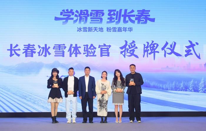 阮刚辉副市长为北京文旅垂类达人颁发“长春冰雪体验官”奖牌。
