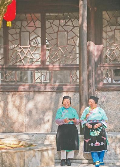 贵州曾是卫所密植、屯堡旗哨广布的军事战略要地。随着明代“调北征南”及其后续战略的推进实施,中原和两江地区的大量人口迁居贵州。数百年间,中原、江南文化与本土文化交融,形成了屯堡文化。黔中安顺屯堡人维系着主要由女性穿用的特色传统服饰(见图,杨爽摄),成为屯堡文化的重要标志之一。