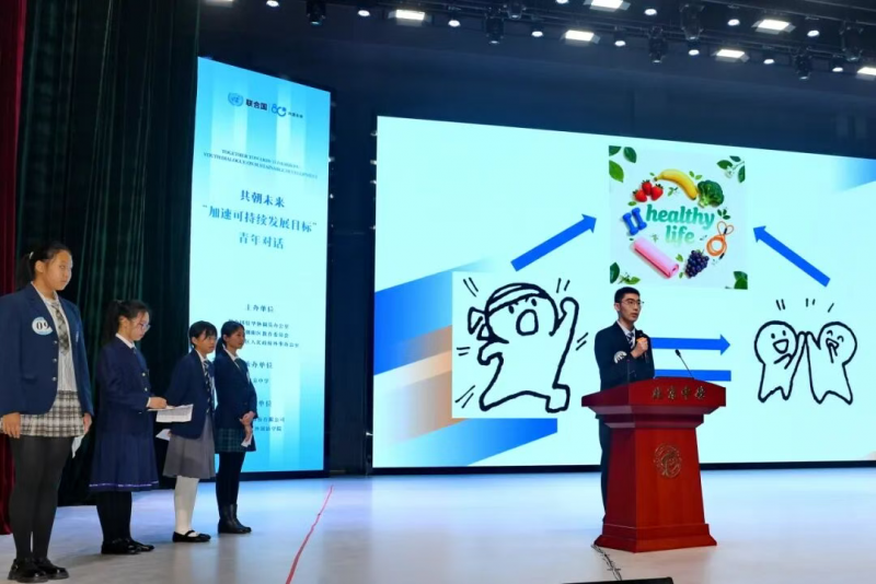北京青年报记者11月17日从朝阳区获悉,由联合国驻华协调员办公室、北京市朝阳区教育委员会、北京市朝阳区人民政府外事办公室联合主办的“共朝未来‘加速可持续发展目标’青年对话”活动日前在北京中学新校区东坝北校区举行。近300名青年学生、教育工作者、联合国代表等人齐聚现场,共同探讨青年在加速实现联合国可持续发展目标中的关键作用。