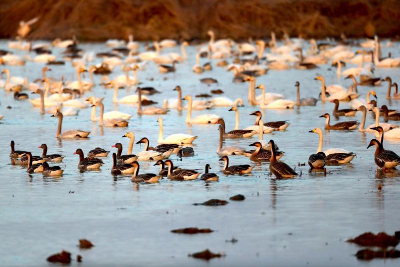 “雁鸭类候鸟喜欢聚集在滩涂、芦苇丛、收获后的庄稼地一起觅食,而天鹅则比较高傲,不愿与其他种类候鸟混在一起,所以我们监测的时候能观察到类似天鹅湖的场景。”
