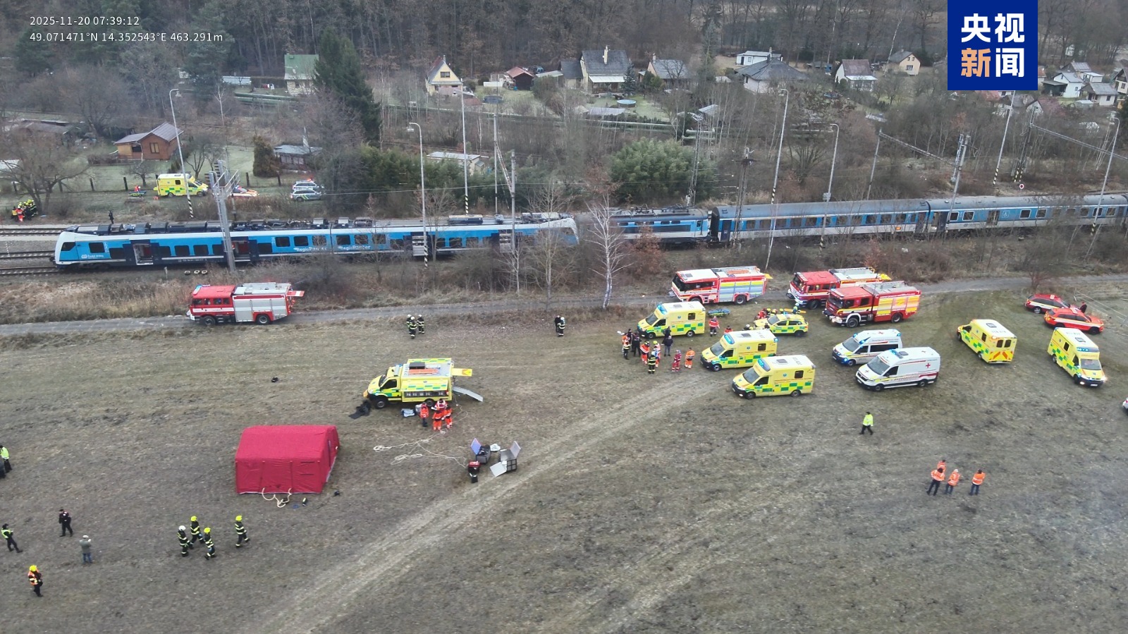 当地时间11月20日,在捷克南部的捷克布杰约维采地区,两列火车迎面相撞。当地一家医院称已收治五名重伤人员。此外,根据救援部门初步消息,可能有数十人在事故中受伤。
