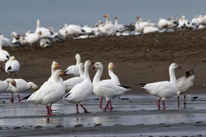 这是11月8日在加拿大里士满艾奥纳海滩拍摄的雪雁。每年秋季,大批雪雁从北方迁徙至加拿大不列颠哥伦比亚省南部与美国华盛顿州停歇觅食,随后再飞往南方越冬。新华社发(梁森摄)