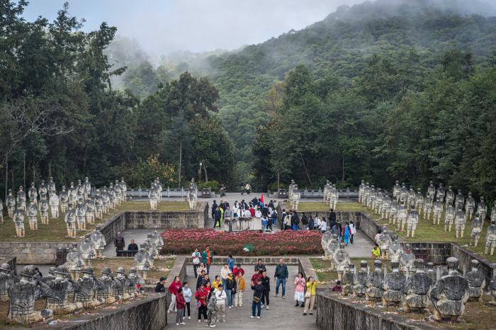 松山由大小二十余个峰峦构成,是第二次世界大战中滇西抗战的主战场之一,因扼守滇缅公路咽喉,被称为“东方直布罗陀”。11月20日,游客在云南省保山市龙陵县松山战役旧址参观。
