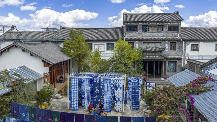 云南省大理市喜洲镇周城村“璞真染坊”一景(无人机照片,11月21日摄)。