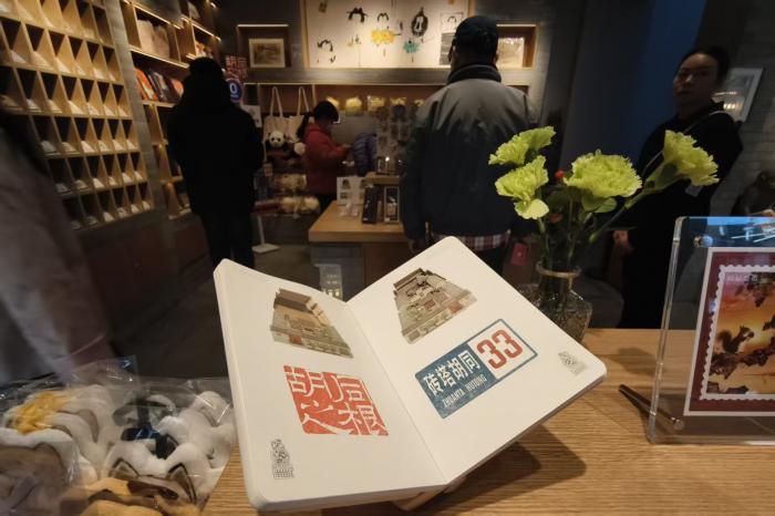 体验馆里以胡同四合院、门楼、砖雕、窗格等经典建筑符号为灵感的系列文创产品琳琅满目。