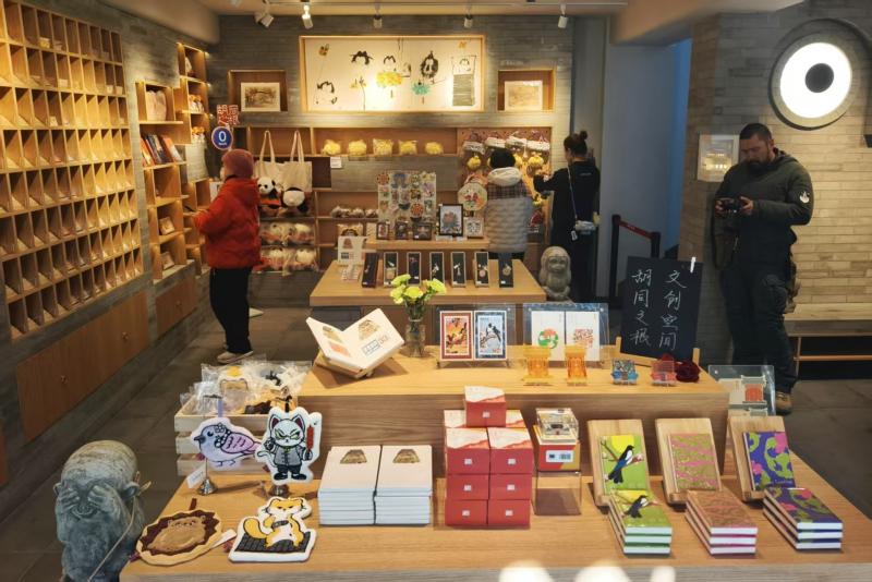 让人垂涎欲滴的鲜红石榴汁端上仿古石桌,搭配手工糕点喝杯香气四溢的咖啡,屋内是阳光洒进来的惬意温馨,落地窗外是见证胡同变迁的古树……走进砖塔胡同33号——北京胡同之根文化体验馆,“胡同之根”茶饮空间营造出雅致的文化消费体验,相邻的“胡同之根主题邮局”,以胡同四合院、门楼、砖雕、窗格等经典建筑符号为灵感的系列文创产品,如“砖宝和他的朋友们”系列毛绒玩具、胡同之根3D立体纸雕本、北京四合院3D立体便签、福禄寿喜财冰箱贴、好运莲莲冰箱贴等,让游客把“北京胡同记忆”带回家。