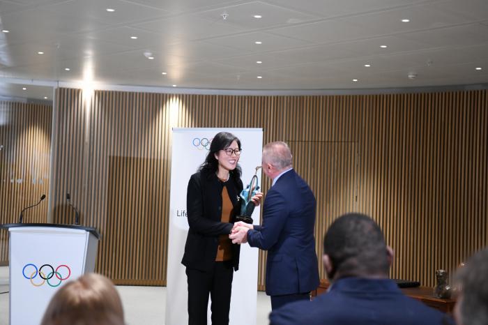 11月24日,中国女排国家队前主教练郎平在国际奥委会总部获颁2025年度国际奥委会教练员终身成就奖。与她一起获得该奖项的还有古巴摔跤教练迪亚兹。