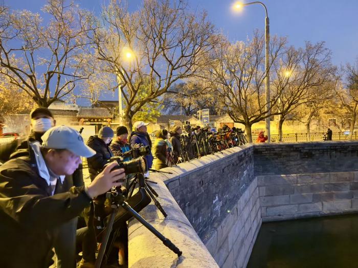“4点50分到的时候,最佳机位已经站了17个人。”从海淀赶来的一位摄影爱好者说。