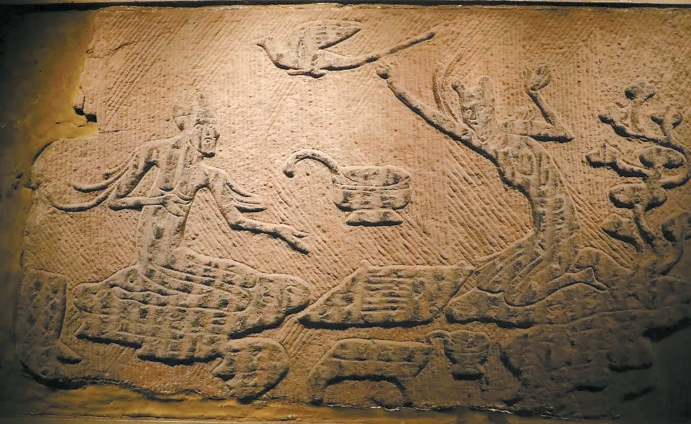 在画像石和墓室壁画上,我们可以看到在棋局之中,用飞扬的衣袖展现出游戏中洒脱释放的氛围感。这是棋局的场面,也是观棋人和木俑制作者的心情。四川博物院藏东汉时期仙人六博图画像石,更是将这种氛围感推向极致。四川博物院在画像石的介绍中写道:“仙人在神山仙境中以阴阳六爻推演着宇宙的运动。领悟和驾驭这种宇宙运动,则能‘以天为盖,以地为舆,四时为马,阴阳为御,乘云陵霄,与造化者俱’,成为逍遥无待的神仙。”这是古人早已想到的人与自然的至高境界。这种将游戏玩法和规则升华为宇宙之道,值得当代人反复体味和深思。