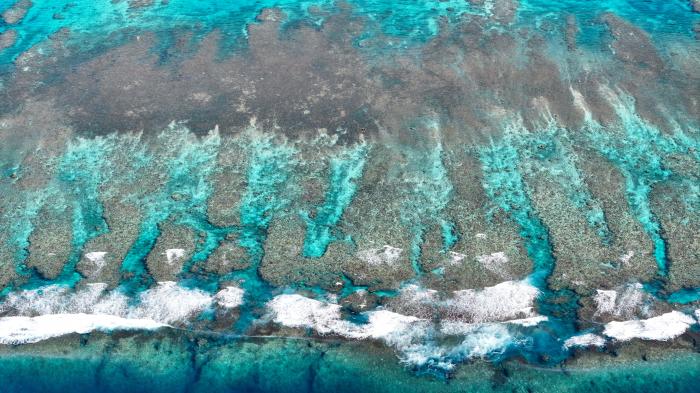 这是11月8日拍摄的黄岩岛国家级自然保护区礁石(无人机照片)。新华社记者 贝赫 摄