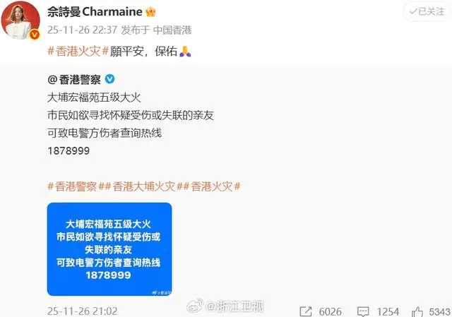 众多香港艺人也纷纷通过社交平台发声,表达关切与祈福之情。