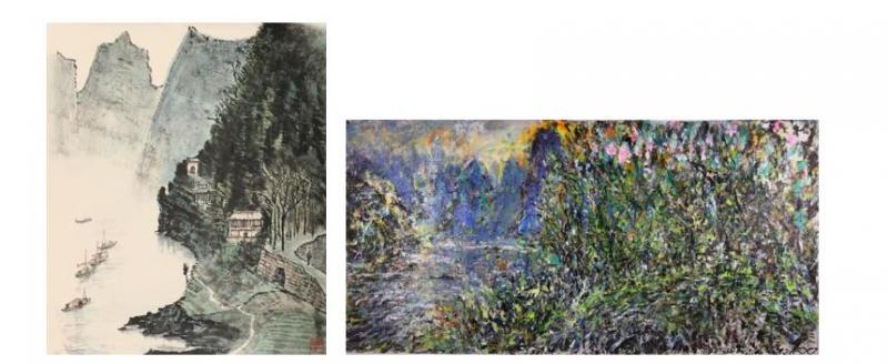 左:为祖国河山立传丨李可染 38×45 cm 纸本水墨 1986