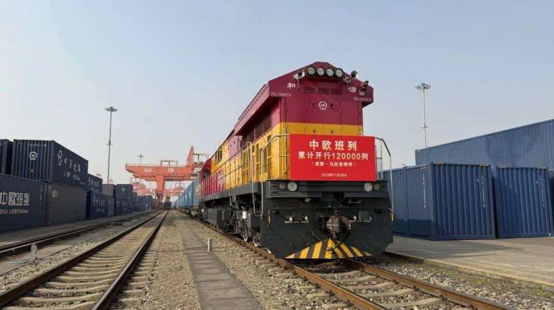 11月28日12时13分,随着开往波兰马拉舍维奇的X8086次中欧班列从中国成都国际铁路港发车,中欧班列历年累计开行突破12万列,发送货值超4900亿美元。中欧班列已成为高质量共建“一带一路”倡议的务实合作载体和广受欢迎的国际公共产品,为保障国际供应链稳定畅通、促进亚欧繁荣和可持续发展作出了重要贡献。
