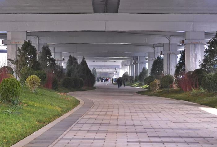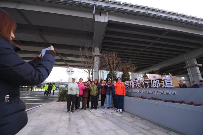 国贸桥下的漫行廊道开放,吸引了不少周边居民打卡拍照。