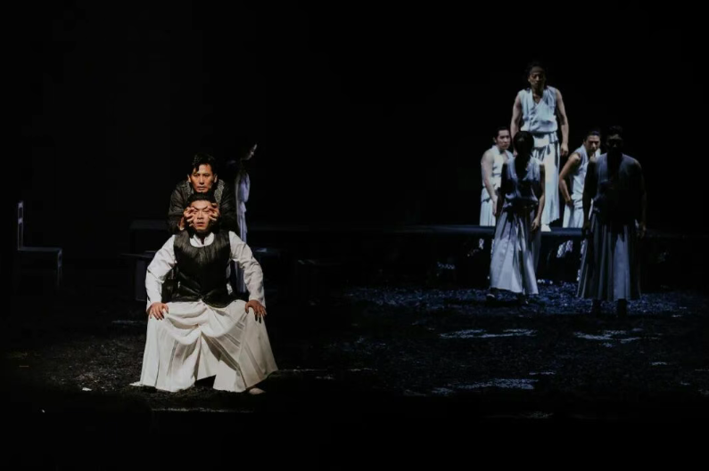 该剧以白衣、黑雪、十把椅子、十位演员的极简美学,演绎出变幻莫测的舞台效果。导演黄龙斌巧妙运用舞台 空间,通过演员们的形体组合和绘意性表达,含蓄地传递出对情景的评价意识,同时激发观众的情感共鸣。这种独特的舞台呈现方式,使得《戎夷之衣》在视觉上给人以强烈的冲击力,在思想上则引发深刻反思。