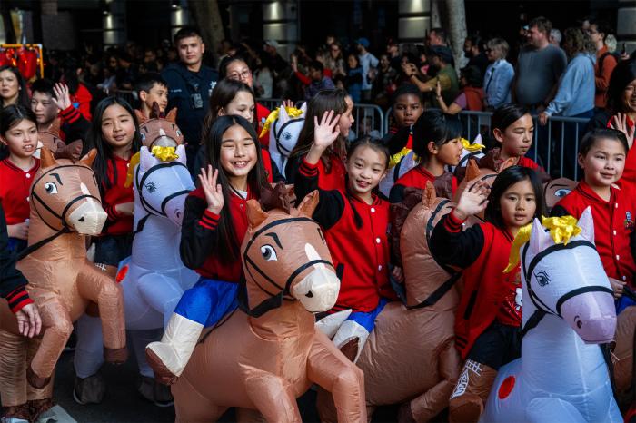 3月7日,人们在美国旧金山参加农历新年花车巡游活动。新华社发(董旭东摄)