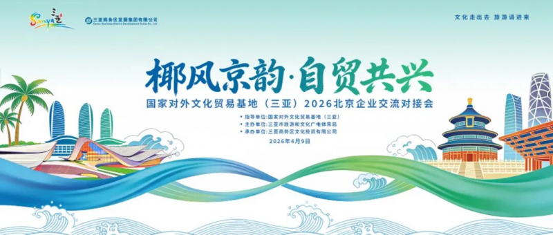 为搭建京琼两地文化贸易的跨区域合作桥梁,三亚市将于近期在北京举办“椰风京韵·自贸共兴”国家对外文化贸易基地(三亚)2026北京企业交流对接会。我们诚挚邀请北京及华北地区的优秀文化产业类企业代表拨冗出席,共话产业新机遇!