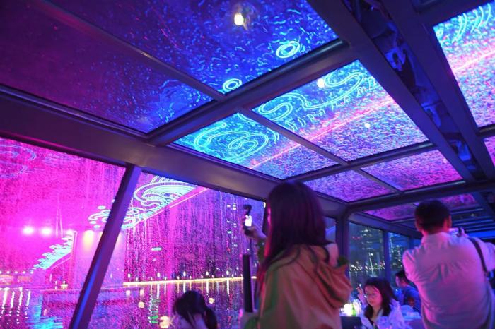 观众可以坐在游船上观看演出。