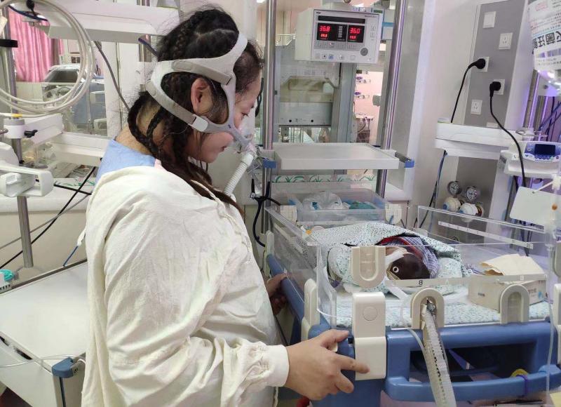 出院后,郭朋贺来到新生儿icu,她不敢用手抚摸他,只能默默的看着。这是儿子出生8天后,母子第二次见面。而再次见到儿子却是在21天后