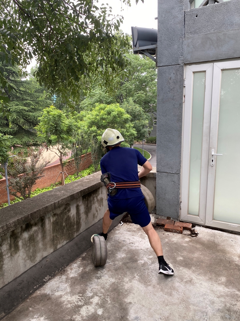7月10日上午,石景山消防支队高能所消防站组织开展垂直铺设水带训练,此次训练标准和要求是快捷和安全。