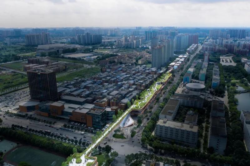 hyperlane超线公园与纽约高线公园highline有异曲同工之妙,它既是一条城市的景观长廊,又是在城市构架上增添了建筑、景观、街区、空间、艺术、社交为一体的多元化设计。园区全长2.4公里,于成都市新都区核心位置,毗邻四川音乐学院新都校区。