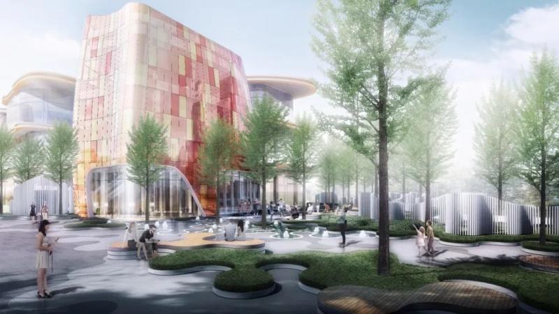 作为展示区整个前场空间,都市广场由包含花卉植物和多方位灵动的休闲坐阶组成,水景与树阵一起,构成了城市主干道与场地的过渡,同时为到达空间提供了视觉连接。流动的水池、充满趣味的边界处理、灯光和纹理的对比以及植物空间,为前场空间和后面演艺舞台之间提供了戏剧化的场地衔接。