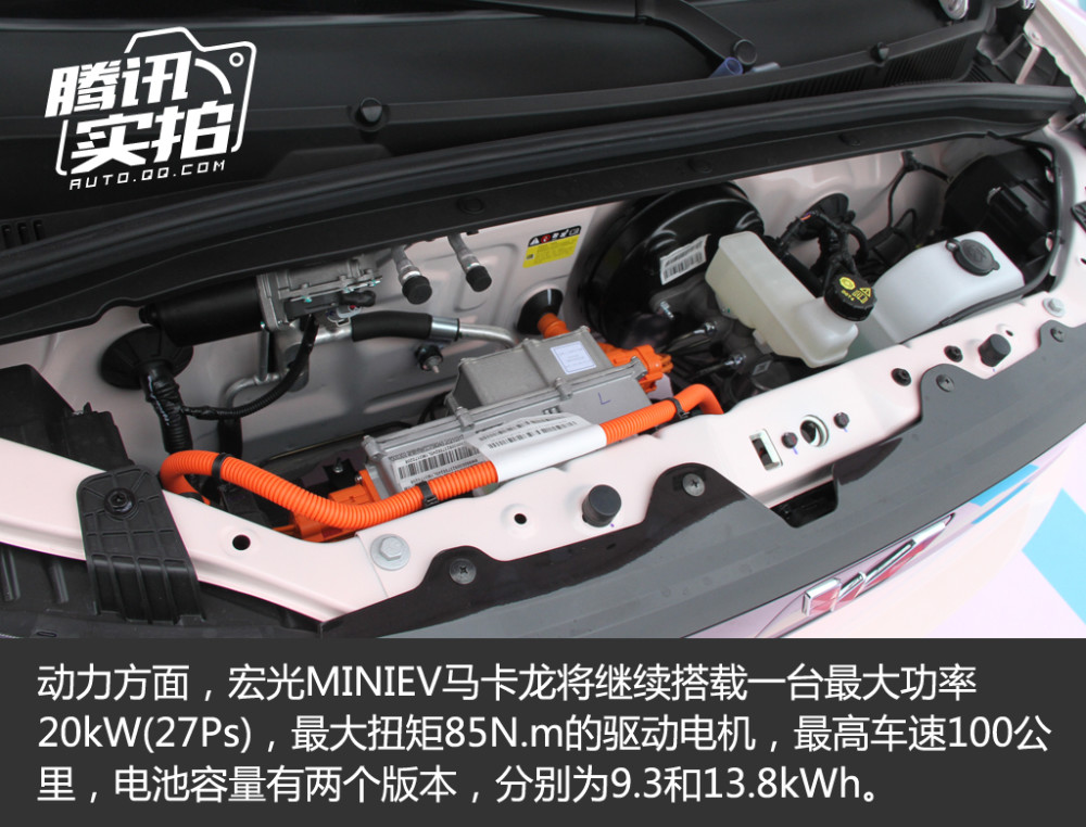 动力方面,宏光MINIEV马卡龙将继续搭载一台最大功率20kW(27Ps),最大扭矩85N.m的驱动电机,最高车速100公里,电池容量有两个版本,分别为9.3和13.8kWh。