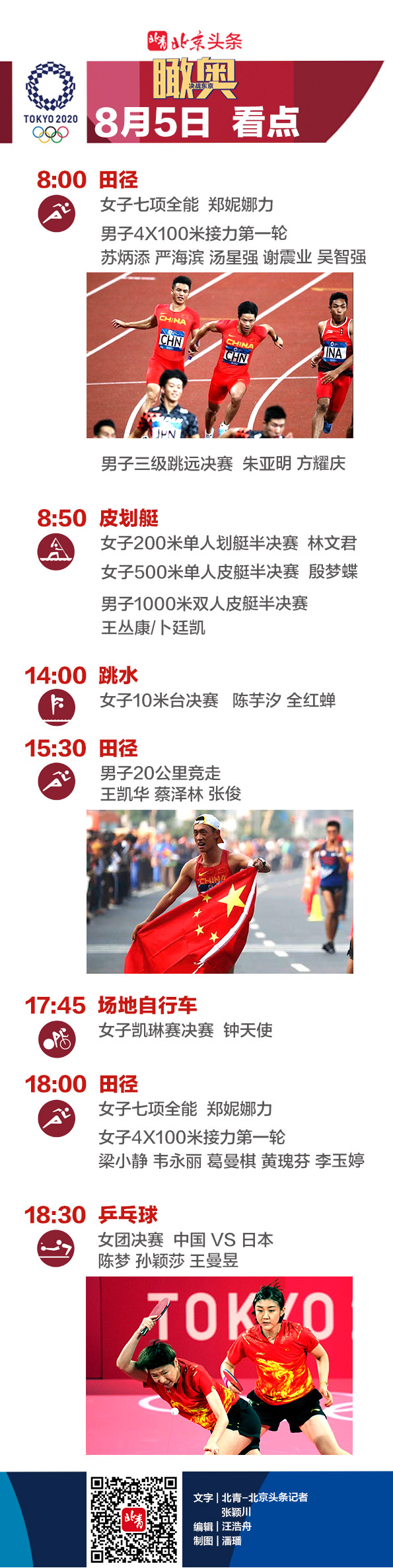 8月5日,中国军团将在东京奥运会上再掀争金高潮,其中跳水女子10米台陈芋汐和全红蝉、男子20公里竞走的王凯华和蔡泽林、女子场地自行车凯琳赛的钟天使都具备争金的实力,而中国女乒团体的目标只有一个——击败日本队卫冕。