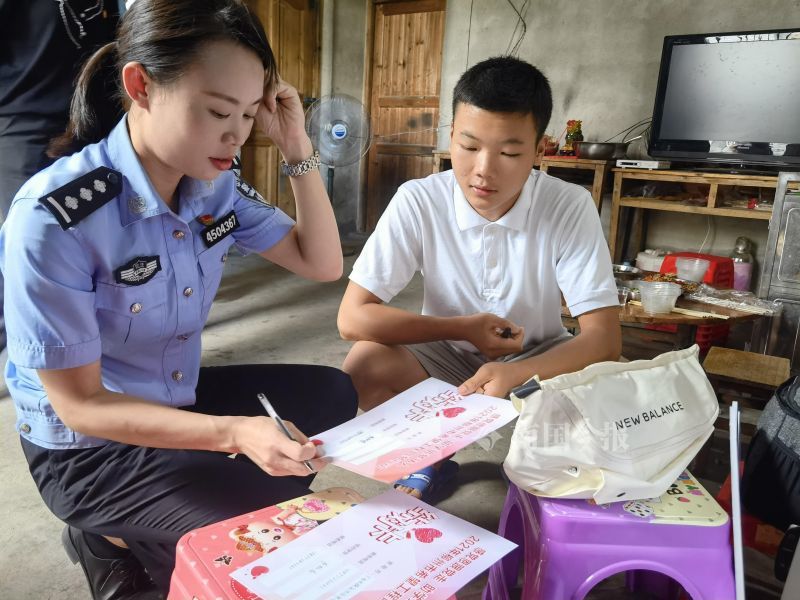 当广西警察学院那湛蓝的录取通知书到来的时候,阿亮第一个和“警察姐姐”分享了这个喜讯。