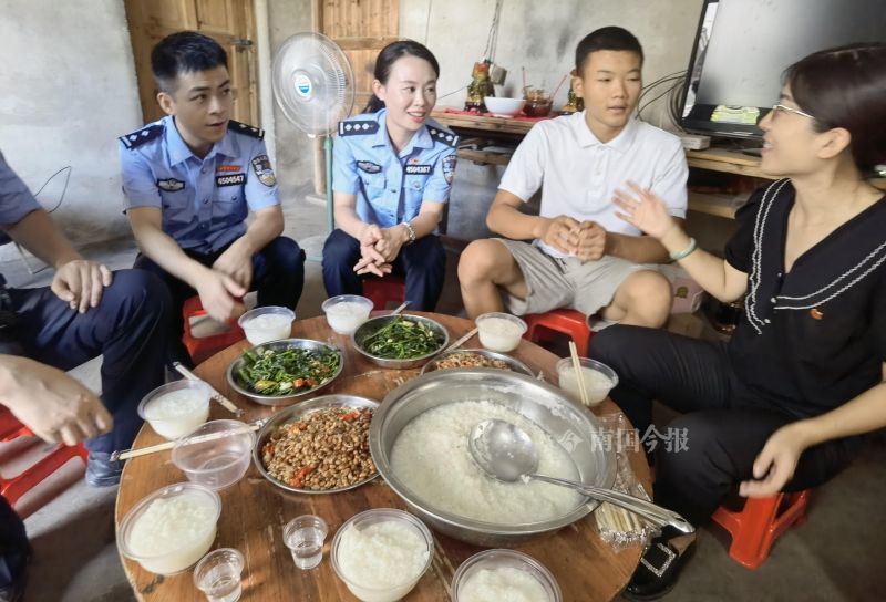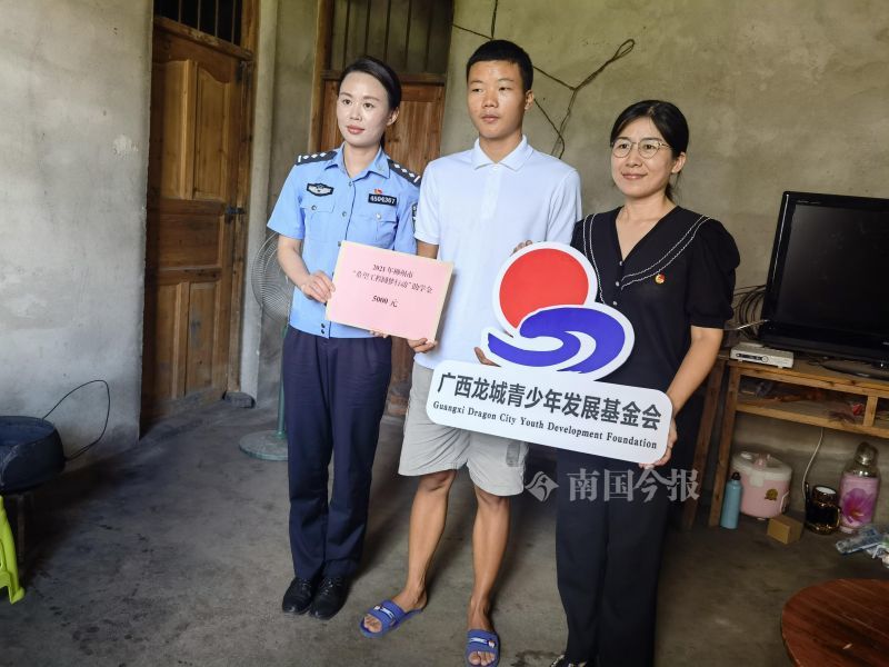9月3日,“警察姐姐”和“警察哥哥”们带来了单位资助阿亮的5000元,作为他上大学第一年的生活费。团市委柳州的几位小姐姐也来了,告诉阿亮,遇到困难说一声,而且欢迎他假期的时候参加团市委组织的社会实践活动。