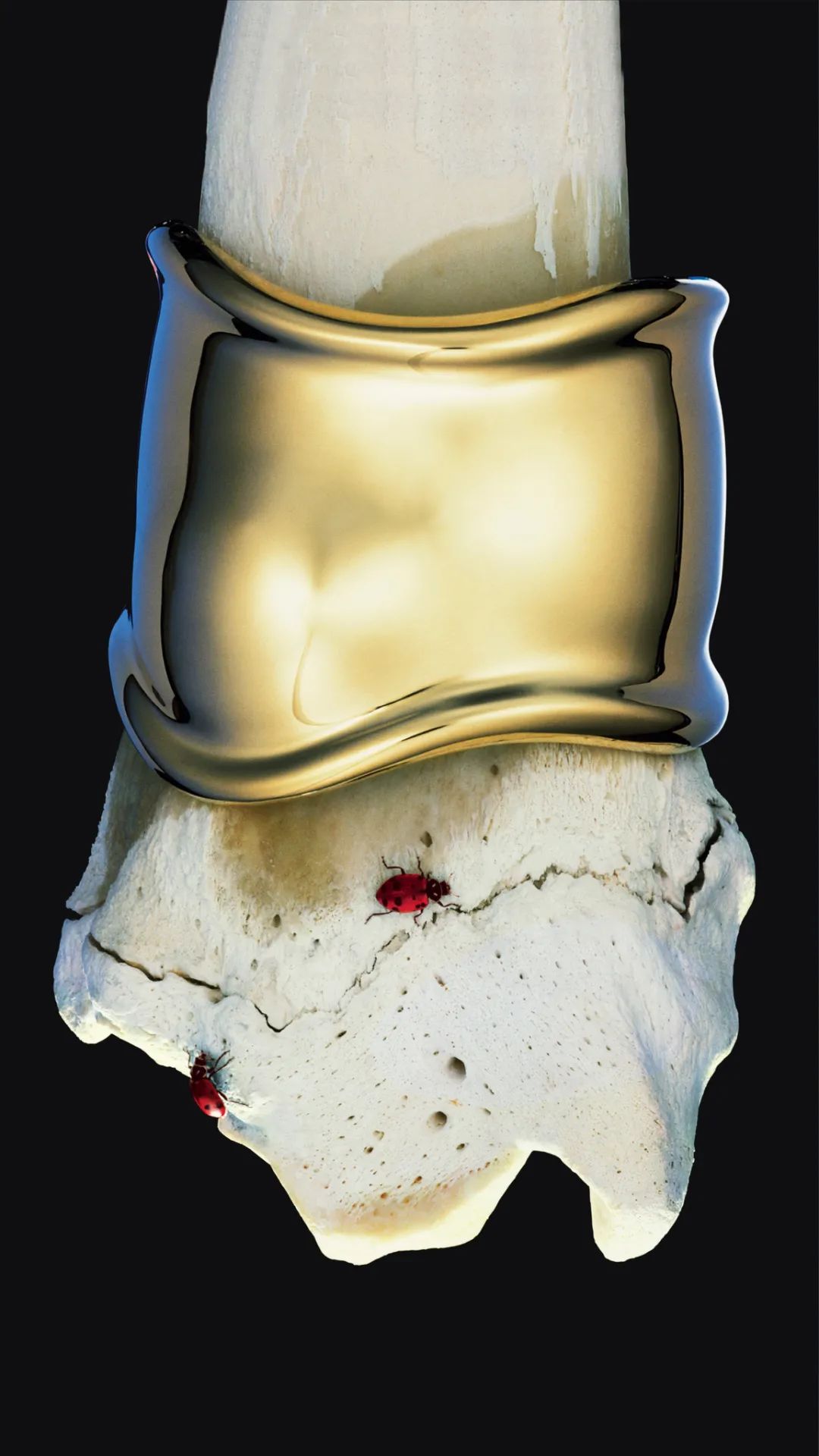在西欧的宗教历史上,修道士和贵族们对宗教圣徒有着圣骸崇拜,他们醉心用华丽的珠宝装饰着逝去圣人的遗骸。闪耀的珠宝让人忘记了对死亡的恐惧。年轻的柏瑞蒂在一座17世纪的意大利的教堂地下墓穴之中曾经遇见过一块人骨,她不顾母亲的警告,将一块人骨带出了教堂。日后,她发现禁忌之物将带来难以寻常的永恒,就像她的Bone Cuff系列的作品,将那一份禁忌之美永恒留存于人间。