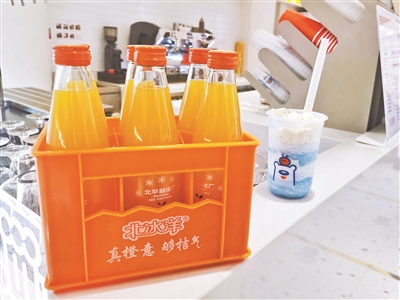 老字号焕发新生,关键还得结合消费者的喜好,不断推陈出新。店内,许多用北冰洋桔汁调制的新款饮料受到了消费者的热捧:店内最具人气的饮品是“北极冰岛”,有奶油、北冰洋特制苏打水,还添加了乳酸菌和碎冰冰,整个杯身呈现清新蓝白色调,口感冰凉清爽,一只蓝色北极熊形状的冰块点缀在奶油上方,让整杯饮品尽显精致;此外,还有桔多多、桔子厚乳巧克力、桂花酒酿咖啡、芋芋乌龙厚乳等,都深受消费者喜爱。冰柜里,一只只可爱的熊爪冰棍也频频现身消费者的社交网络,火龙果味、巧克力味、草莓味,应有尽有。