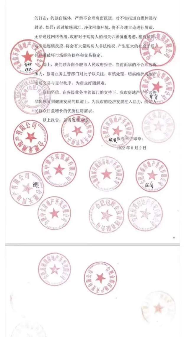 8月12日,一份名为《关于请求维护营商环境、增强房企投资信心的纾困解难报告》的文件在网络流传,落款处清晰地盖着保利、华润、绿城、龙湖、旭辉和葛洲坝等17家品牌房企的印章。
