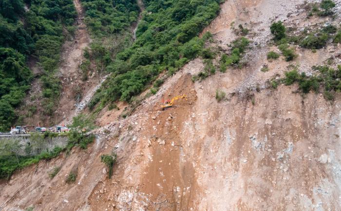 地震致山体垮塌 四川石棉县百草坪路段爆破排险