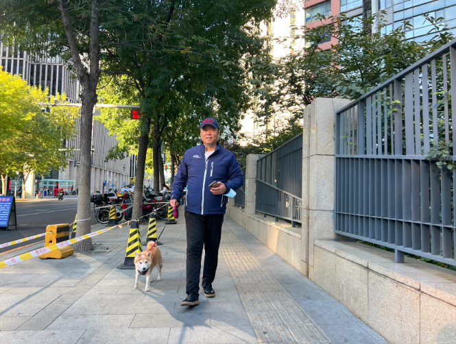 走咯,柏油,出发咯!清早不到7点,市民邹毅一手拿着手机,一手牵着爱犬“小柏油”,迎着朝阳从家里出发了。邹毅:我叫邹毅,我是从2013年的1月27号开始,用手机记录北京空气质量的变化,到2022年正好是10个年头。我一般是按照日出时间来安排每天的拍摄,夏天的时候,我会在大约6:30出门,冬天的时候会在7:30左右出门,这样拍出来可以进行一个很直观的比对。每天拍完之后就发在我的微信朋友圈还有微博,每个月要把它制成一个月报,每年要把它做成年报,还会在国外的这些社交媒体上来发布。