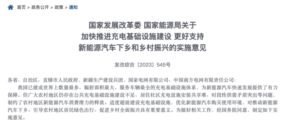 紧接着5月5日,李强主持召开国务院常务会议。这次会议审议通过了“加快推进充电基础设施建设、更好支持新能源汽车下乡和乡村振兴的实施意见”。