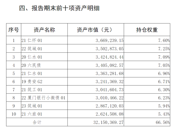 需关注的是,城投债券可能会对银行理财产品带来影响。在贵州银行发行的理财产品中,配置了大量贵州城投债,例如理财产品“贵银恒利黔利盈定开第46期”。根据贵州银行官网披露,该理财产品2023年末业绩比较基准为4.10%-6.00%,资金几乎全部投向债券,且前十项资产占比66.56%,大部分为贵州城投债,如“21仁怀01”、“22筑城01”等。