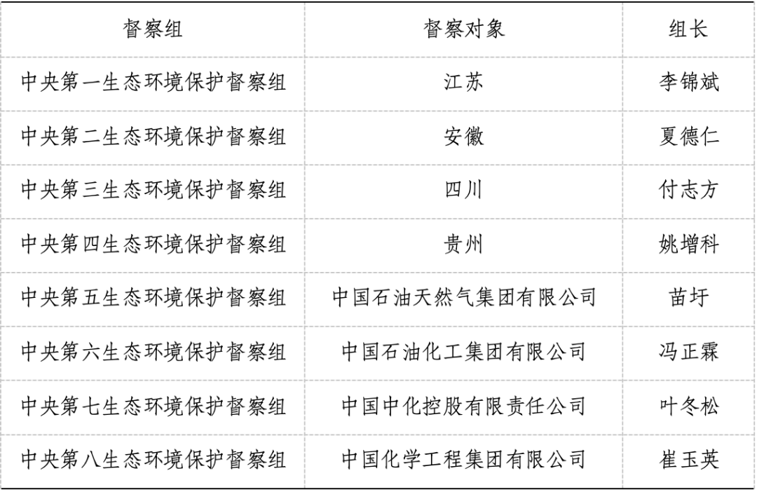 政知君注意到,第三轮第三批中央生态环境保护督察组已全部进驻,担任组长的都是正部级,包括李锦斌、姚增科、苗圩等。