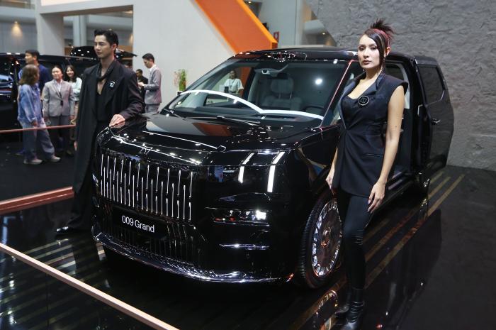 这是12月2日在泰国首都曼谷举行的泰国国际车展上拍摄的极氪009光辉电动车。