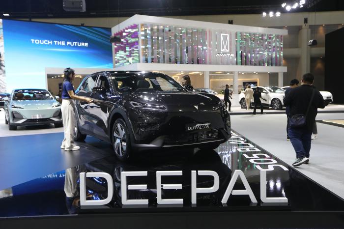 这是12月2日在泰国首都曼谷举行的泰国国际车展上拍摄的深蓝S05电动车。