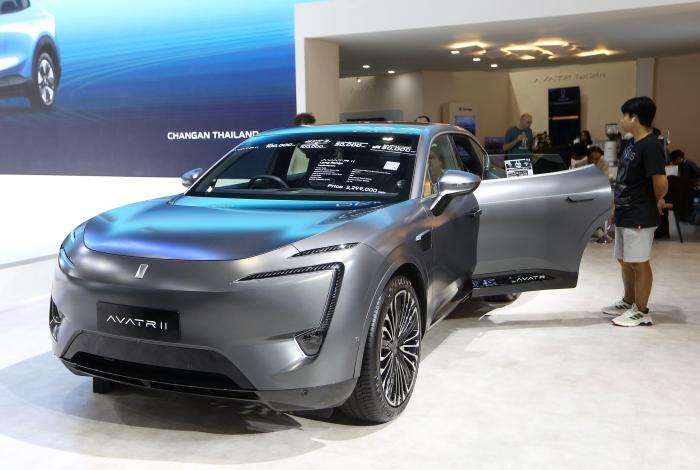 这是12月2日在泰国首都曼谷举行的泰国国际车展上拍摄的阿维塔电动车。