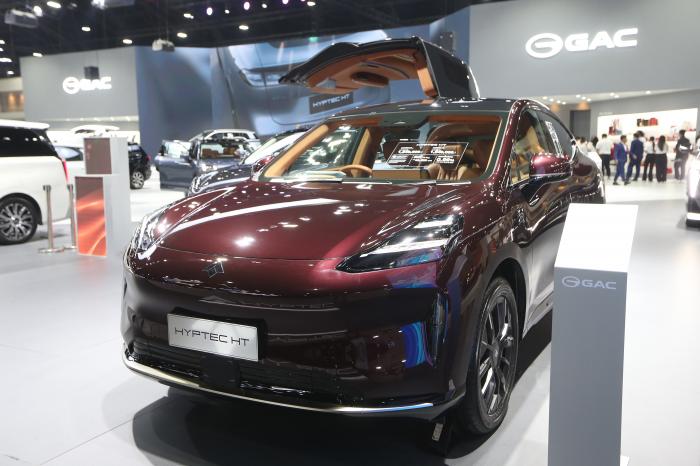 这是12月2日在泰国首都曼谷举行的泰国国际车展上拍摄的广汽HYPTEC HT电动车。